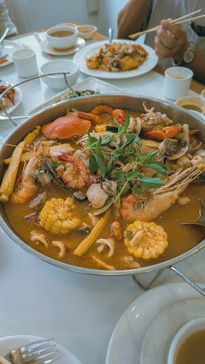 The restaurant offers a diverse menu featuring fresh seafood prepared in traditional Rakhine cooking styles, including soups, curries, steamed and fried dishes, salads, and barbecued options. Notable dishes include the seafood fried rice, which combines squid, octopus, crab, fish, prawns, and vegetables, and the noodle salad, known for its generous portions of fish.