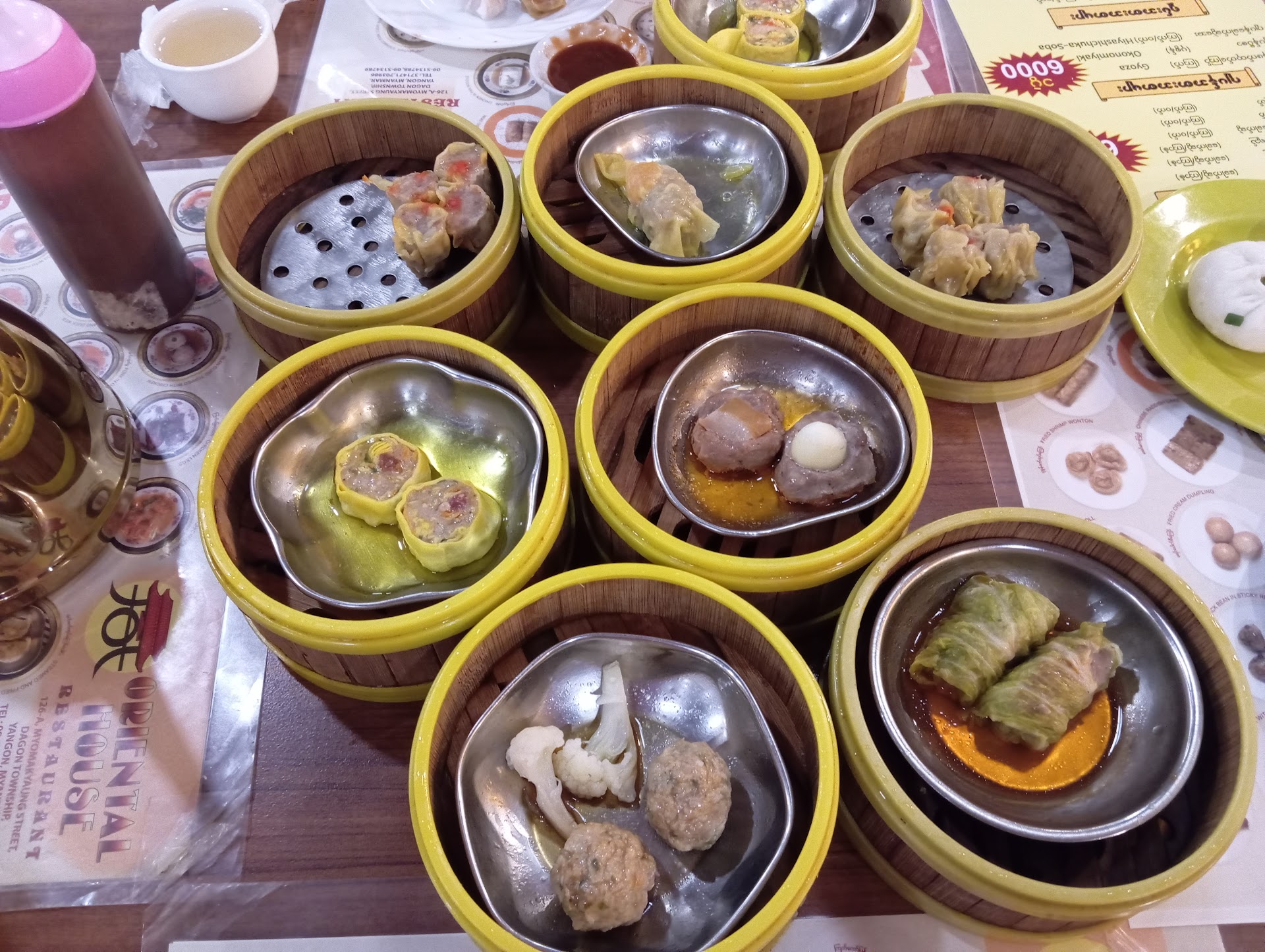 I was recommended to drop by this place for dim-sum. It was quite disappointing. When you entered the restaurant, you will be greeted and walked to your table. You will be served about 10 bamboo steamers of different dim-sum choices. You dont have to eat them all. The waitress will take them back if you do not eat (unhygienic). The taste is not that good, if you are a usual dim sum diner. The meat tastes very bland. The hot tea was fine. The toilet is very clean.