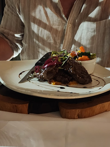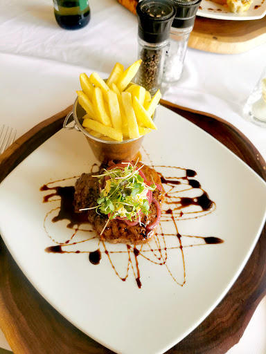 Ordered a medium to rare steak got a piece of fat and tendon, served with baby potatoes, they rectified the steak but got a paste with my order and not the baby potatoes. I think if you want a tip with every drink you add to the bill at least provide service at the table rather your customers getting up every time to ask for something. The staff, very unprofessional dealing with paying clients and please address people better when handeling...