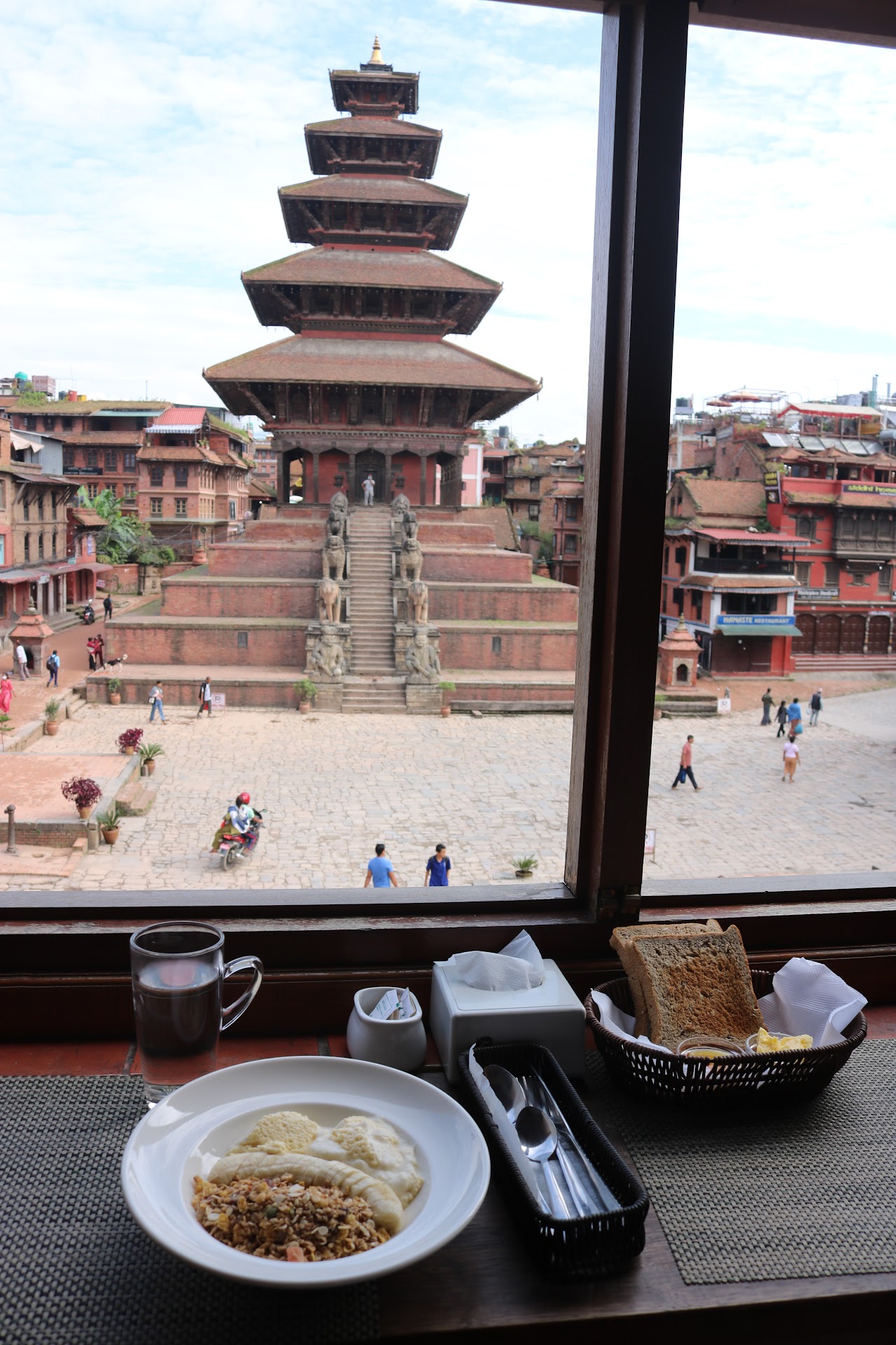 Read moreA great spot for every meal of the day, and for drinks after dinner (we kept coming back to this place). The location is wonderful, with a stunning view of Bhaktapur's main square and the Nyatapola temple. The owner is a very kind, hard working man, who is really passionate about his work. He has composed the menu with care and serves a great selection of products. Great service as well! We would recommend this place to anyone visiting Bhaktapur!...