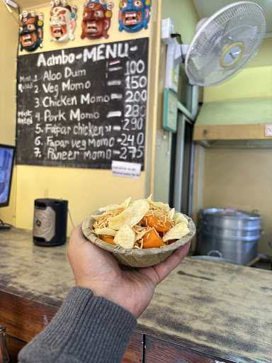 Read moreMe and my brother went to Aambo Momo after finding out about it thought Instagram. Our expectations were high and we was longing for the taste of that authentic Darjeeling momo. It was relatively easy to find the place. I logged on to goggle maps and followed my way. We parked our bike right outside the shop. The smell of momos surrounding the streets. Our mouths watered as we climbed up the stairs to the restaurant. It was smaller than i expected it to be but was really well put. The staff were friendly and we placed our order for two pork moms and aloo dam. As we waitied for our food we checked out their asorments of achars for the momo. My favorite was the peanut achar but the dalle achar and the timur achar were good too. We waited for about 10 mins and then our food arrived. Steamy pork momos and beautiful looking aloo dams served in a leaf bota. One bite into that momo and it took me right back to my childhood, nostalgic about the time we used to have 4 pieces of momo for INR. 5/- in a similar leaf bota. The aloo dams were good too, but i just hoped they also served the curry aloo dams too. In conclusion, Aambo momo captured my heart and whenever I have a craving for delicious Darjeeling momos i will be...