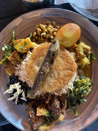 Most of the dishes were fried in extremely poor-quality oil that should have been discarded long ago. The bhutan was greasy and unpleasant, samay baji looked average but tasted terrible, and the whole fried fish was rubbery with an overpowering taste of rancid oil. The bara was dry, chiura felt stale, the saag and sandheko achar had started to smell from being left out unrefrigerated, and the so-called chhoila tasted nothing like itâjust over-fried fish. To make matters worse, everything was over-salted.