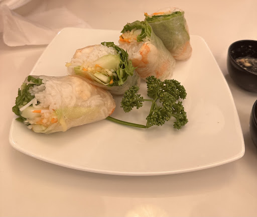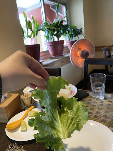 Clean but sterile. Nothing like going into a pho restaurant in Hanoi. I had to request garlic (good) and vineagar (horrible commercial white vinegar not even Chinese black vinegar). Even the herbs in the rolls were weak tasting. Why put cut noodles in the rice noodles rolls? Where are the vegetables? Is there no basil in KTM? Mint and lime were good though. All the sauces were lightweight. Why no peanuts in the sauce?