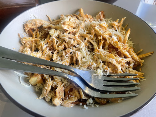 We ordered the pulled chicken fries, and we made our own bowl with quinoa, shawarma chicken, Caesar dressing, and a few other tasty add-ons. Everything was fresh, flavorful, and super filling â exactly what we needed after being super hungry!