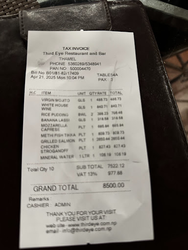 We have visited Kathmandu numerous times and Third Eye Restaurant has always been our favorite place to eat. In fact, this is our second time dining here this week, and we had a great meal with great service, that is, until the bill came.