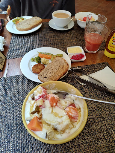 Read moreI don't usually leave bad reviews but this cafe seemed so far from its current rating I had to. It's just a kitchen for the hotel serving basic unappetizing, low cost food. The fruit and yogurt was the only thing worth eating (can't screw that up). I barely ever leave something unfinished, but the masala tea we had to. I'd swapped it for the green tea I had first because it tasted and smelled like someone had been using the mug as an ash tray. The only positive was the place seemed clean and it has a nice courtyard. It's also worth noting the change I received was pulled out of...