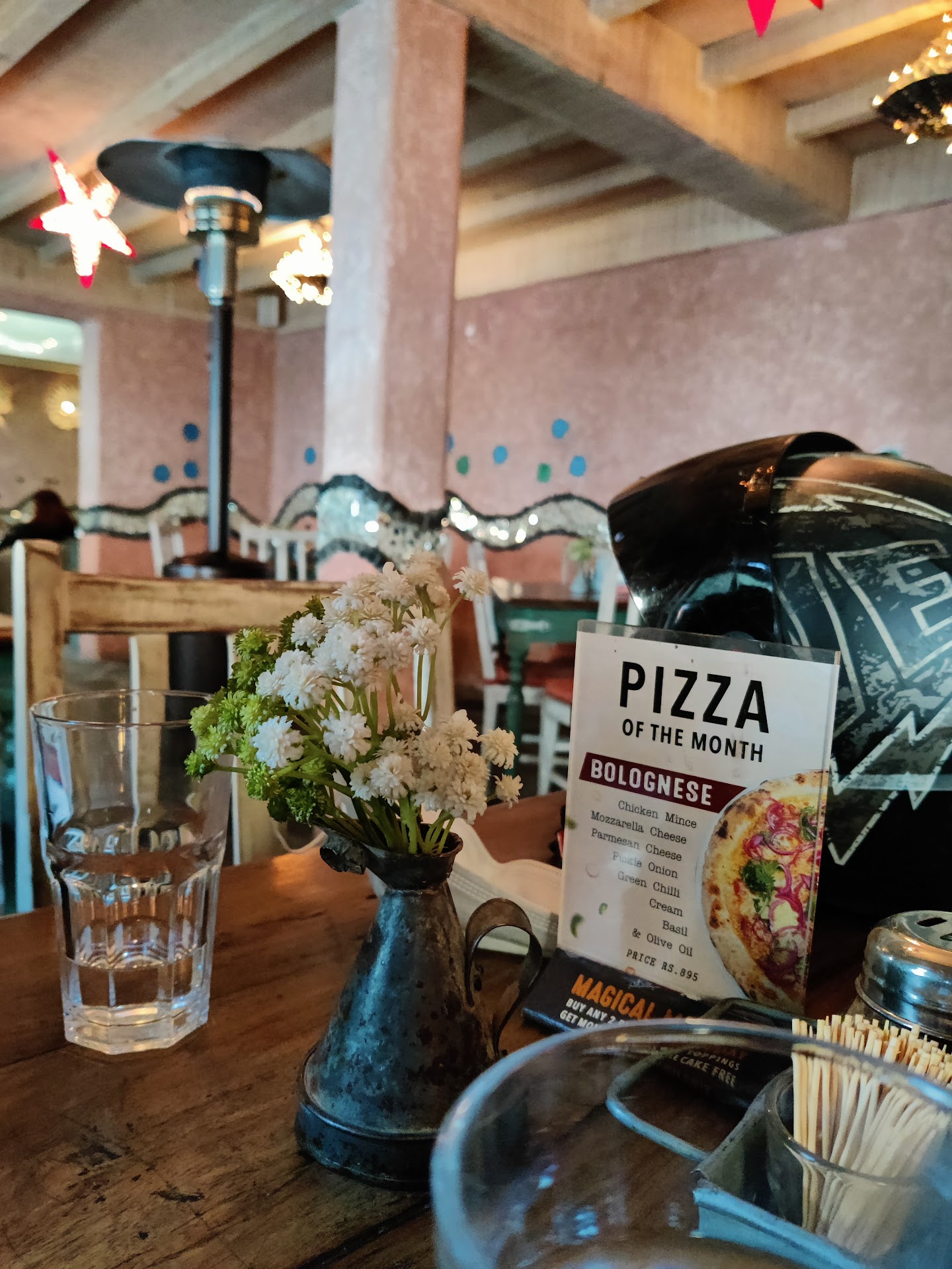 In addition to pizzas, the café offers an array of dishes inspired by Italian, Mexican, and Mediterranean cuisines. Some highly recommended options include spaghetti, carbonara, wraps, nachos, tacos, and even momos, making the menu diverse enough to suit all tastes. For beverages, they provide a range of coffee options and fresh juices, ensuring something for everyone.