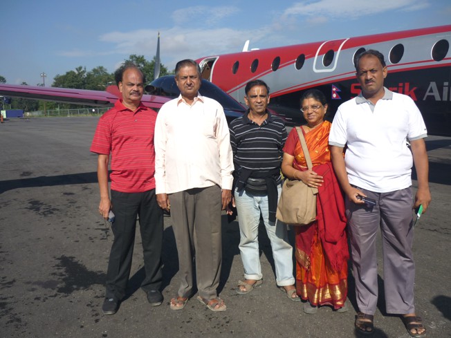 The bus proceeded to Kathmandu with a tea-break. The ghat road we crossed was scenic and beautiful and we reached here by evening.We wanted to take the mountain flight to see the Everest so next morning we headed for Tribhuvan Airport.The trip cost Rs.6000 + Rs 200 airport tax. This one hour flight by Smirik Airlines was a thrilling experience. No haggling for window seats as every passenger got it. The captain flew at a level where it was easy to click photos and the airhostesses told and explained everything. We got to go to the cockpit one at a time to view the peaks from there. The view was different as we were looking down or at the side of the peaks and not up as we do. Clouds were floating between mountains and sometimes above them. It was like the dream scenes we see in movies where a fairy or angels pops out. We got to see more than 16 peaks with names we couldn’t pronounce. Lhotse, Gauri Shankar. Sagarmatha and Kanchenjunga were familiar names. Mt Everest called Sagarmatha was thrilling to behold capped by snow. The thrill of seeing the unconquerable was great and after an hour we returned to base with certificates signed by the captain and vice captain. Yes We had seen Mount Everest, the highest mountain peak in the world and strutted about like Edmund Hilary and Tenzing Norgay.