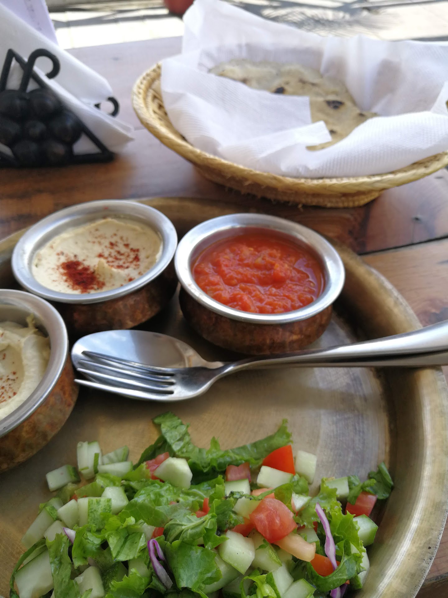 Read moreGreat and healthy Israeli food, very diverse menu items all the way from basic salads to Hummus, Jachnoon. They also have nice drinks, with a good variety of cocktails, although a bit on the expensive side compared to other places around in Pokhara. The REALLY painful thing with this place isn't about the food itself, it's about the staff. The waiters here take their time to do the simplest tasks, like when asking for a glass of water, you could easily sit around for a solid 5-10 minutes before getting it. Another example of the awful service, is after ordering the Fatush Salad I've been having here for the past few days, last time it came without ita olive oil and lemon dressing, when asking the waiter for the dressing he argued that the salad comes without one (btw, the dressing appears on the menu).