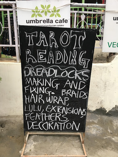 Read moreCurrently they have an artist, Diana from England, doing dreadlocks, hair wraps, braids, and tarot reading here! I did two hair wraps with 3 silver pieces on it. Each hair wrap costs just 400rs(the silver pieces are not included. They are extra 100rs each). I’ve done hair wraps before but never had one as pretty! It’s fairly priced, detailed, beautiful and you can pick 5 colors for each wrap! I love the final work so much so I decided to share it here. There are some other photos of her dreadlocks works for other guests, which all look fantastic:) On the other note, food here is good too. I had a big bowl of Russian Borscht...