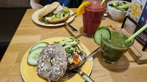 Read moreThe bagels are not actually bagels. These are typical dutch buns with a hole in them. They do not have the chewiness or density of a bagel. They clearly have not been boiled for a minute before baking. It is just completely not a bagel by any means. When I asked the waitress if they had real bagels, or whether they had boiled them, she looked befuddled and said I was just served one. So.... fellow NY-ers, if you want to have a piece of bread with reasonable toppings, this is a great place to go. If you are looking to satisfy your bagel cravings, you will leave very...