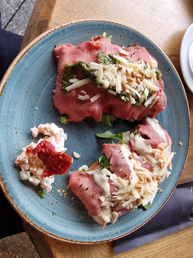 It was pretty busy for a sunny Thursday afternoon and it took the staff quite some time to get to us. We originally decided to go there to use the bathroom and gave a quick drink but after both of us using the toilet and still not getting any service we decided to stay and enjoy the sunshine.