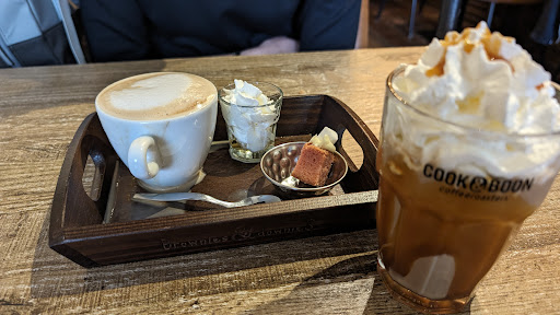 Zaterdag 18 augustus terug geweest bij deze locatie van Brownies&Downies. Nu was deze gelukkig wel open en naar ik vernam was deze vorige week dicht, omdat er geen kok aanwezig kon zijn. We werden keurig geholpen en de gerechten (twee soorten gebak en twee soorten koffie) waren prima van smaak. Ook de manier hoe de koffie werd 'aangekleed' kon alleen maar alle lof krijgen. Tip... serveer een chocolade bol gewoon 'plain' zonder een wellicht goed bedoelde stroopachtige strepen en roze minibloemetjes. Mijn bestek was door deze stroopachtige substantie niet te gebruiken. Als je het wilt aankleden lever dan een servet of papieren taartrand/cupje. Naast ons zaten twee bezoeker met een broodje rosbief en dat zag er ook prima uit. Wier weet een...