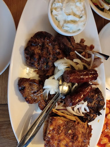 Read moreFirst I would like to mention, is the view. Absolutely stunning. You can sit outisde and enjoy the beautiful St John Cathedral. Now, the food, even better haha We order the tapas, such a great option if you want a little bit of the most popular dishes, and it was delicious. I loved the meatball. As the main dish, we choose the grill plate for 2 persons, and it was enough food. We also order a portion of fries , and the feta salad, but it was a little disappointing because there was just a little feta ( 2 thin slices ), and lots of peppers. But the meat plate was excellent, tasteful, and cooked perfectly. The drinks came first and quick, the tapas 10 minutes after ordering, and the meat around 30 minutes after ordering. We were at the restaurant on Monday, and outside, around 18:00, it stated to be full. So better to make a call before and reserve your place if you want...