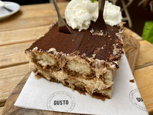 Today we visited Den Bosch. It is a cozy city in the Netherlands. We were in the city center surrounded by many options for lunch. So we decided to use our google reviews to find a high rated restaurant. Gusto was at the top. And we were just 5 minutes away. It was full with locals, which is a good sign. We got a table and got our coffie quite quick but it took long time to get our sandwiches. In the meantime, i was observing the decoration and the way how the service was provided. The waiters are very friendly, especially one who seems to be the oldest from the crew. He was amable and talkative. I liked the open kitchen to see how the 3 people prepared the food and were working as fast as they can. I love the light decoration too. But the toilet was a mess with water on the floor. It happens because the sink is very small and the water splash all around. Ideally thet go to clean it every hour. Finally our sandwiches arrived. They were big and had a good filling. It was a good portion. We asked for the tomatoes bread. Our first impresion after the first bite was that the bread taste dominates the flavours and we didnt taste the grilled eggplants and prosciutto. We removed the top of the bread and finally we could enjoy the delicious combination. The bread was too big with a strong taste. Maybe it was not a good choice and with another bread type it...