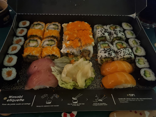 Helaas is mijn tevredenheid sterk afgenomen⦠allereerst zijn de prijzen enorm gestegen. Voor eenzelfde bestelling was ik 20% goedkoper uit. Een flinke (!) prijsstijging dus⦠waar we voorheen wel eens wekelijks sushi bestelden, werd dat serieus minder (voor de gezondheid ook niet slecht). Ditmaal toch besteld. De sushi was lekker, maar de afwerking was vroeger ook echt lekkerder. Een simpele (en niet heel smaakvolle) soort van cocktailsaus en chillisaus: nee dank je⦠ook erg vervelend wanneer je een tijdstip moet kiezen, ze ineens een half uur eerder voor de deur staan⦠gelukkig waren we al...