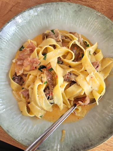 We ordered a tagliatelle pasta and a salmon dish, both were delicious - especially because of the sauce. It was packed with so much flavor! I love a good pasta dish, and they have some great ones. You can test the pasta noodles are freshly made by the texture, and it was perfectly al dente.