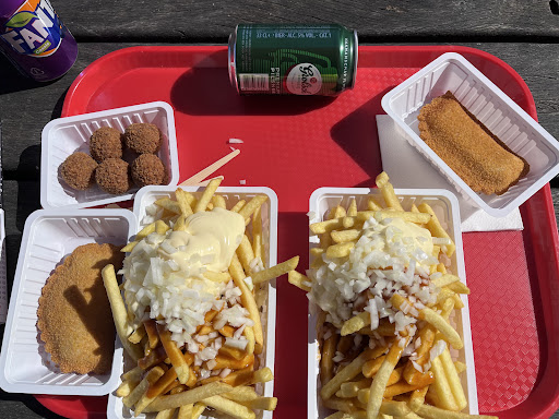 Read moreLeckeres Essen, halt "typisch" holländisch wie man es als Deutscher so kennt.. wir hatten den Klassiker mit frikandel spezial und Pommes Spezial, meine Frau hatte Oorlog (ist dann pommes spezial, aber Mischung mit Majo, Sate Soße (Erdnuss Soße und Zwiebeln) war alles echt lecker und hier fahren wir wieder...