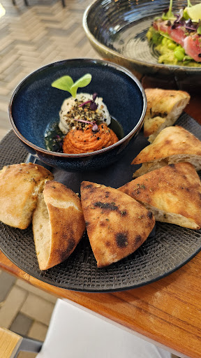 Read moreEin fantastisches Restaurant mit wirklich leckerem Essen, das sehr gut schmeckt und sehr hübsch angerichtet ist. Wir hatten das Brot mit 2 selbstgemachten Dips, das Tuna Sashimi und das Wassermelonensashimi, beides mit Avocadocreme und Edamame und Ponzudressing. Zum niederknien lecker. Die Melone war mariniert und hatte eine tolle Konsistenz, hab ich so köstlich noch nie gegessen. Danach kam der Angusburger mit einem medium gebratenen Rindfleischpatty und der Fisch des Tages, Seebarsch mit Bimi und Miso Beurre Blanc. Ein Traum. Begleitet wurde das tolle Essen mit leckeren Weinen. Zuerst trockener Rosé aus Frankreich, danach ein Sauvignon Blanc und ein Rioja. Gerne hätten wir ein Dessert probiert, wir haben aber nur einen Espresso geschafft, der aber auch lecker und heiß war. Wir wurden vom sehr netten Personal aufmerksam bedient und haben uns sehr wohl gefühlt. Da das Wetter schön war, haben wir im schönen Aussenbereich gesessen, mit Blick aufs Wasser. Wir sind so begeistert, daß wir sehr bald wieder dort einkehren werden. Update: Heute waren wir wieder dort. Das Curry Risotto mit Garnelen und Tuna ist auch sehr köstlich. Ausserdem konnten wir heute ein Dessert probieren, eine Schokotarte mit Aperol und Garnache. Fantastisch...