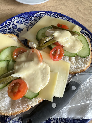 We had the cheese sandwich (which was fine), the fresh apple pie (was great), a latte (which was better than it looks in the picture) and an OJ and a babycinno (canât mess those up). We paid 24 euros tip included, which seemed fair and a great way to support a local!