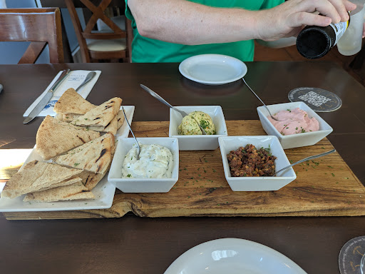 We went to this greek restaurant for lunch on a Sunday. The staff greeted us warmly and quickly seated us and brought us our drinks. The starters came shortly after and we had a assorted mix of dips, pita bread, olive tepenade, and mousse of feta with red pepper. It was absolutely delicious. The bread tasted authentic (we were told they bring it from Greece) and served warm. Our main meal took a little longer (we were in a rush), but it was probably the best Greek food I've had in a very long time. We had a mix of shrimp, squid, moussaka, peppers stuffed with feta and other items. We don't eat red meat and the staff were very happy to accommodate our request. We need to head home quickly so our food was packed promptly which we brought home with us. Overall we were very happy with the food quality, presentation, ambience and the service and will come back another day when we have time for a more leisurely lunch. The restaurant gave us a feel of home cooked food, we would highly...