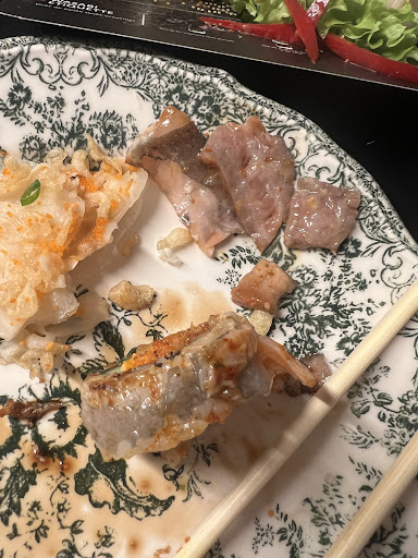 Sushi was oké, warme gerechten zoals yakitori loempia en Japanse chicken was niet lekker. Diepvries zooi. (Dit is een aanname)