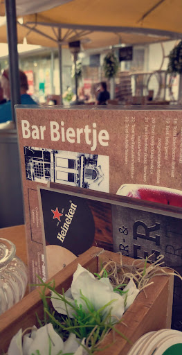 Wat een ellende was dit vandaag zeg. Eerst wil je bestellen, krijg je bits dat je niet het gerecht moet noemen maar de nummers op de kaart. Vervolgens komt na 10 minuten je drinken terwijl je naar niet afgeruimde tafels zit te kijken. Er komt een gezin naast je zitten, die na 10 minuten nog niemand zagen, dus deze stonden op en liepen weg. Vervolgens zie je 40 minuten geen gehaktbal met friet en geen tosti, terwijl de mensen die na ons kwamen wel eten kregen. Dan vraag je beleefd of ze ons eten was vergeten en dan krijg je als antwoord, ik werk niet in de keuken 🤨. Nou dan betalen we het drinken en gaan we... Oke dat is dan 5 euro. Geen sorry, geen navragen bij de keuken, helemaal niets. Daarna zijn we naar brasserie de Linde gelopen en daar stond binnen 10 minuten ons drinken en 2 stokbroodjes kipsate en half om voor onze neus en het was heerlijk en echt een aanrader ! Gemiste kans Bar biertje...voor ons echt een...