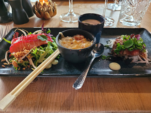 Het restaurant was gezellig vol op zaterdagavond. Heel sfeervol ingericht restaurant. We gingen zitten en werden vlot geholpen met drankjes wat brood en de kaart. Ook het voorgerecht ging vlot. Lekkere Carpaccio. Daarna duurde het bijna 45 min voor dat het hoofdgerecht geserveerd werd, terwijl andere tafels wel al hoofdgerecht hadden gekregen. Maar goed uiteindelijk hoofdgerecht gekregen en het smaakte erg goed! Ik kreeg per ongeluk de verkeerde vis maar dit werd razendsnel gecorrigeerd. We hebben heerlijk gegeten. Mixed grill met pepersaus en zeebaars met (fantastische) tomaten risotto (mag ik dit recept?) We hebben besloten geen nagerecht te nemen want daar was geen ruimte meer voor maar die zagen er (bij andere tafels) royaal en lekker uit. We komen vast nog eens terug, misschien dan niet op zaterdag? Service was goed maar het personeel was gewoon heel druk met al...