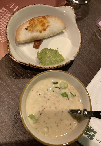 I ate here with colleagues. The atmosphere is nice and the staff is friendly and fast. Drinks are included in the price, unless you choose one of the more expensive options. One thing to note is that I thought the food quality differed per dish. Some dishes, such as the Rendang, are really good while others, like the nachos, are less so. I really recommend the soups, rendang, spekkoek, mango mochi and the gyozas. I advise against the nachos (very heavy on the stomach too imo), nigiri (this isnāt a sushi restaurant so it wasnāt the best), currywurst (the bun it comes in is very soggy and dry) and the ham (the meat was very red and it didnāt taste great).