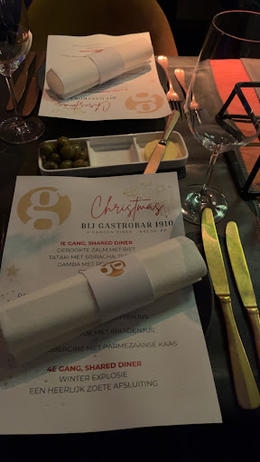 Ik heb getwijfeld tussen 1 of 2 sterren. In mijn ogen kan een patatkraam 5 sterren krijgen als ze leveren wat je er van verwacht, de prijs/kwaliteit op orde is en net de verwachting kunnen overtreffen. Hierom vind ik de Gastrobar 1910 helaas ook maar 1 ster waard. Het was op veel vlakken echt een teleurstelling. Het personeel mag meer aandacht aan haar gasten geven én wat efficiënter te werk gaan. De aankleding en kaart is prima, maar valt toch wat tegen. Prijstechnisch is de Gastrobar 1910 aan de dure kant, wat niet erg zou mogen zijn. Helaas rechtvaardigt de algemene kwaliteit de prijs totaal niet. Ook in het centrum van Almelo zijn er nog enkele vergelijkbare restaurants te vinden welke wel hun hogere segment prijs/kwaliteit...