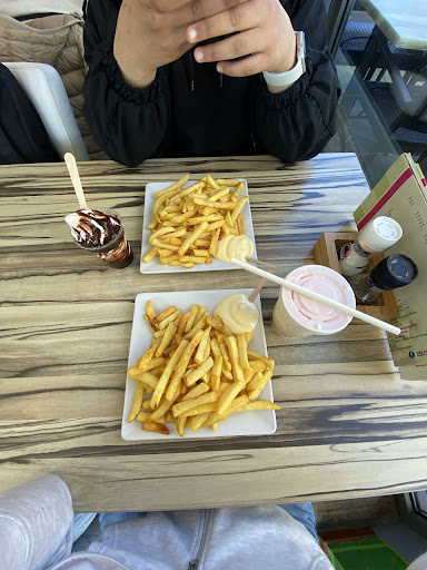 Duur en zeer matige service. Het was druk. Na enkele minuten gewacht te hebben op onze beurt werd er gevraagd of we binnen of buiten wilden zitten. Buiten was ons antwoord en wilden de bestelling doorgeven, maar meneer zei....gaat u maar zitten. We komen eraan. Na 10 min nog niemand buiten geziennte hebben, toch maar naar binnen weer 5 minutwnnop mn beurt weer gewacht. Ik gaf mn bestelling eerst door en zei daarna datbik al eerder hier was en dat we zonder bestelling naar buiten werden gestuurd. En heel brutaal zei de jongeman...ja okay. verbouwereerd maar naar buiten gestapt en maar wachten op ons eten. Na 10 min kwam het eindelijk. Dus ruim 30 min na binnenkomst kregen we onze bestelling......foutief....ik had een maaltijd besteld ...op een bord met salade etc...maar kreeg mn patatje in een bakje. Omdat het etenngeserveerd werd terwijl ik even naar de wc was heb ik niet ter plekke hier wat van kunnen zeggen.tegen degene die het kwam brengen. Mn dochter van 10 zat dus even alleen toen. Het was te druk binnen en hadden trek , dus ben maar niet mijn beklag gaan.doen. GEEN HEERLIJKHEID voor ona in ieder geval. Patat was verder prima alleen mocht er wel iets...
