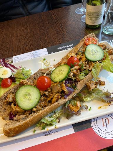 Eerste en laatste keer dat we hier komen. De bestelling ging totaal verkeerd. We kregen niet het stokbroodje warme beenham met honing mosterdsaus en lenteuitjes die we besteld hadden...dus werd het weer meegenomen naar achteren. Daarna kwamen dezelfde broodjes ham nu warm met wat lenteuitjes en een bakje saus weer terug en 1 nieuw stokbroodje warme ham zoals oorspronkelijk besteld. K moest er achteraf ook nog iets extra voor betalen ipv korting. We zaten buiten en dat was maar goed ook want binnen rook het erg naar bleekmiddel. De toiletten waren net schoongemaakt. Ik vond het binnen ongezellig. Niet echt een sfeer zoals je die van een Franse croissanterie zoals de naam Delifrance doet vermoeden verwacht. T Was eerder de sfeer van een bijna verlaten lokale afhaal pizzeria of zoiets. En de toiletten zagen er ondanks de bleekmiddellucht smoezelig uit...de wc bril zat los...hier en daar afgebrokkelde tegeltjes..Nee deze zaak heeft dringend een fikse upgrade nodig. Jammer want t is een top locatie zo vlak bij het station...tegenover de altijd druk bezochte Primark. Maak de naam Delifrance waar...dat kan al met weinig maar zeer effectieve middelen. En maak van je broodjes, wraps, etc. iets meer dan nu het geval. Als je bosuitjes/lenteuitjes vermeld op de kaart verwacht ik meer dan 4 verdwaalde snippers lenteui... Nou ja..ik zal ophouden te mekkeren en te zeuren...we zijn er zelf gaan zitten voor de lunch. Succes met de zaak. Het heeft potentie...maar dan moet er mijn inziens nog heel...