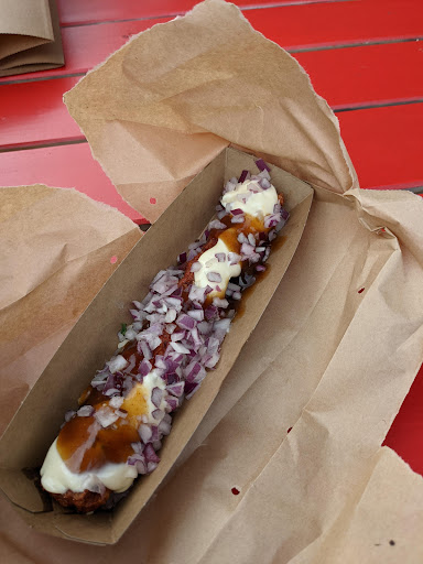 De slagersfrikandel (eigen recept, ook uit Almere) speciaal was echt speciaal! Je proeft dat er echt vlees in zit. Het is bijna een worst! Curry, en rode uitjes, betere smaak en het ziet er ook goed uit. Ik zal vaker terugkomen, al is het alleen maar om de verschillende toppings en kroketten te proberen, want die zijn ook bijzonder (en gemaakt in Almere).