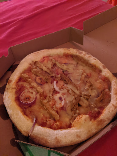 Read moreBesloten om af te halen ivm eventuele promoties, aangekomen bij het restaurant vroeg ik om een flyer zodat ik in de auto een keuze kon maken, ik kreeg na even zoeken twee flyers. We hebben in de auto een keuze gemaakt, waarna ik die keuze wilde bevestigen in het restaurant, maar toen bleek dat de coupons van de flyer al lang verlopen waren. Snel schakelende bedacht ik me, die dan maar 1 pizza en vroeg om een 7,99 pizza, prima zei de balie medewerker, " anders nog iets?" Toch wat hongerig besloot ik er om er nog 1 te nemen daarna vroeg ik om de prijs van garlic bread waarop de baliemedewerker zei: " die krijgt u er gratis bij" , ik zei: "ahh dat is mooi, doe maar erbij". ik was erg moe en rekende af, thuis gekomen blijkt dat ik ruim €26,- heb betaald. Ondanks dat de pizza's best lekker waren geeft dit een...