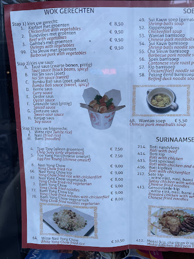 This was a relatively weird choice of me and my wife. We wanted to go to a true Chinese restaurant, but found out that these were too far away for a quick bite. I always rate after the context. You do not compare the local snackbar with a Michelin rated restaurant. That would be nonsensical. Therefor, I rate this tiny little restaurant after what they are: a weird duck in the world of international food. Honestly, I should have given them maybe 3* for the food and probably even less for the atmosphere. But on the other hand, it was a somewhat comical experience, the staff is obviously working as hard as they can, the lady came to our tables with the food and was very polite, wished us a good meal, she came with the extra serving of sambal to our table, and kindly ignored that one of the four of us had brought her own food bought in another shop. And actually, my bami with chicken tasted quite good, infinitely better than the noodles I had earlier this week in a restaurant in Amsterdam. The whole place could do with some renovation work, a complete Gordon Ramsey overhaul, but that would likely kill the authenticity and destroy their identity. I can only wish them good luck and hope they do will within the context of their...