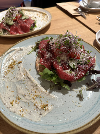 Read moreNice brunch place! Food portions are plenty and there are nice options on the menu. We had the carpaccio toast and the club sandwich, which was huuuge, and came with a super lekker spread. In terms of drinks there are many options for coffees. I had the pumpkin latte and it was...