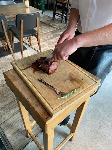 Ordered the Chateau Briand (for two). We asked for it to be cooked medium/rare but what was served was a non CB shaped piece (much more like and end piece cut) and was overcooked - especially where the piece was less thick. A mediocre taste with a rubber consistency isn't what you expect for a 70 euro piece of meat. (The added photo doesn't clearly depict the thin part of the meat on the far end)