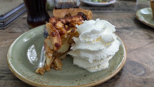 (Als je een geintje uit wil halen, bestel Limburgse vlaai. Volgens de eigenaar had iemand van ons dat bestelt. En is hij boos omdat het niet op de kaart staat. Nog mooier is, dat niemand zich kan herinneren dat er vlaai is besteld. Wel appeltaart. Maar geen vlaai. Dus bestel eens vlaai, als je sensatie wil 😁😁).