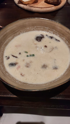 Gisteravond hier heerlijk gegeten met een vriendin. Ik was hier nog nooit geweest, maar wat een toptent. Bij binnenkomst werden we vriendelijk begroet door meerdere personeelsleden en werden we snel naar onze tafel gebracht. We bestelde cola wat binnen een minuut op tafel stond (of dat ze het aan ons zagen zo snel😉). We hadden een broodplankje besteld en het was genoeg voor 2 personen en lekker brood wat ook niet onbelangrijk is. Mijn voor gerecht was de Tom kha kai soep ik had een heel portie gekozen (je kan hier dus kiezen tussen hele en halve gerechten hoe ideaal is dat. Dus als je grote of kleine trek heb dan is hier voor ieder wat wils) de soep was echt heerlijk niet te Spicy maar ook niet te flauw echt precies goed ze was ook goed gevuld dus bij elke hap zaten er wel ingrediënten in. Ja echt een top soepje. Mijn tafelgenote had een klein portie Koud gerookte zalm besteld (helaas geen foto) deze zag er heerlijk uit en smaakte ook super. Mijn hoofdgerecht was een groot portie Ricotta pasta met spinazie en paddestoelen oh oh oh wat heb ik genoten. Blijkbaar hadden ze in de keuken een kleine fout gemaakt want ik had bijna nog geen hap op of er stond een ober bij onze tafel met nog wat extra ravioli in een bakje en excuseerde zich blijkbaar lag er niet genoeg op mijn bord (het was mij iig niet opgevallen) mijn tafelgenote had de Entrecote met truffeljus besteld. Deze is dan niet in een kleinere variant te bestellen (lijkt me logisch) ik heb een stukje van het vlees geproefd het was een heerlijk, mooi gebakken stukje vlees. Er zat zelfs een heerlijke grillsmaak aan. Ons dessert was Coupe De Heerlijckheid bestaande uit: Coulis van passievrucht & mango - yoghurtijs - slagroom - Licor 43 ik was de bob dus voor mij zonder de licor 43. Ook deze was heerlijk niet te zoet gewoon perfect. Ook hadden we thee besteld en deze kwam samen met een plateau vol snoepjes, koekjes, koffiebonen en heerlijke bonbons echt te gek allemaal. De bediening was helemaal top stuk voor stuk even aardig, vriendelijk en behulpzaam. Snelle bediening. Alles zag er schoon uit. Geweldige sfeer. Zeker een aanrader. Ga ik hier nog een keer heen. Zeker wel. Wij hebben iig een...