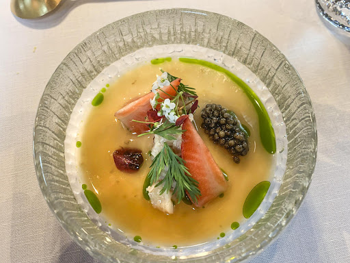 Wat direct opvalt, is de verfijning van de gerechten. Elk bord dat op tafel verschijnt, is een kunstwerk op zich – rijk aan smaak, verrassend in combinaties en perfect in balans. De unieke samensmelting van de Franse en Baltische keuken zorgt voor een culinaire ervaring die je zelden tegenkomt. De bijpassende wijnen tillen het geheel naar een nog hoger niveau en worden met zorg geselecteerd.