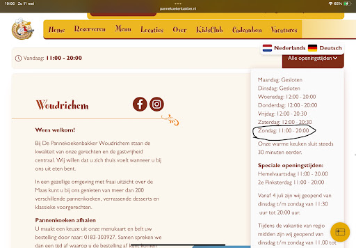 Read moreWe liggen met de boot in de haven van Woudrichem en zoals zo vaak geen zin om te koken lopen we even naar de buren " de Pannekoekenbakker". Op zaterdag avond, niet gereserveerd zo naar binnen... oei zegt de behulpsame dame dit wordt ongemakkelijk. We zitten helemaal vol. Ze stelt voor ons telefoonnummer achter te laten en dat ze belt. Vinden we iets anders, even goede vrienden. terug naar de boot waar al na 5 minuten de telefoon ging "ik heb een plaatsje voor 2 hoor" klonk een vriendelijke stem. Dus terug gewandeld en ja hoor, mooi plekje als gevraagd op het terras aan het water. Mijn partner neemt een tomatensoep waar ik kies voor een uiensoep. Nou de complimenten, de soep is om te beginnen geweldig, goed op smaak met kaas en croutons. Om te smullen. Er is enorm veel om uit te kiezen wat betreft pannenkoeken. Mijn partner neem de carpaccio en ik besluit voor de pittige met kip en jalapeno, mijn god wat een hap, het zweet loopt van me gezicht en zo hoort het ook, lekker pittig. nog even de donut gevuld met softijs, stroopwafel met daarover heen de caramelsaus en een flinke dot slagroom ben ik wel klaar. Vriendelijk personeel, jong maar ze weten van aanpakken en dat zie je niet vaak. Ik heb een top avond gehad en super lekker gegeten. Team de Pannenkoekenbakker een dikke 5 steren want deze zijn verdient! een grote pluim voor...