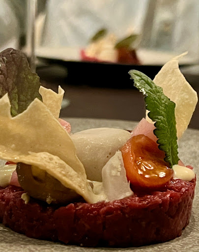 Read moreMet zijn tweetjes hier van een magnifiek zesgangenmenu mogen genieten (voorgerecht twee tussengerechten hoofdgerecht kaasplank dessert). Diverse hele sterke punten te noemen aan dit restaurant: De gerechten zelf zijn überhaupt waanzinnig, ook een aantal heel verrassende combinaties die geweldig uitpakken. De compositie was bij elke gang opnieuw ook prachtig. Heel leuk dat ongeveer hetzelfde vlees op twee verschillende manieren bereid bij elkaar werden gebracht op een bord Heel belangrijk: voldoende tijd tussen de verschillende gangen en porties die in grootte ook precies goed zijn, geen overdaad aan hoofdgerecht bijvoorbeeld waardoor je je te vol voelt zitten. Ook meedenken met het zalige brood dat eventueel aangevuld kon worden Wij kregen bij elk gerecht een bijpassende wijn (dus de sommelier zelf laten kiezen). De sommelier gaf heldere geduldige uitleg over smaken afkomst en dergelijke (leuk: diverse Portugese en Spaanse streken waar het eten dat erbij hoorde ook haar roots heeft). Mooie nuances in wijnpalet en nooit overheersend Het is topkwaliteit qua eten en qua bediening is men vooral heel gemoedelijk en in voor een grapje. Dus de gezellige warme sfeer van een eetcafé maar de kwaliteit van een restaurant dat...