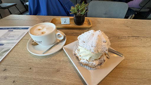 We do not recomend this place if you are looking for friendly and welcoming vibe. We bought breads inside the bakery and wanted to have drinks and more sweets on the terrace, but we were send away. While we sat down bigger party of 8 plp arrived. Becouse they needed 2 tables and just one next to us was free the unfriendly waiteress told us that we can not sit there becouse we have bought take away breads from the bakery...we tried to order drinks from her but she refuses to sell us and sended us away. We are 2 adults and 2years old child so probably not enought interesting customer for the coffe place....
