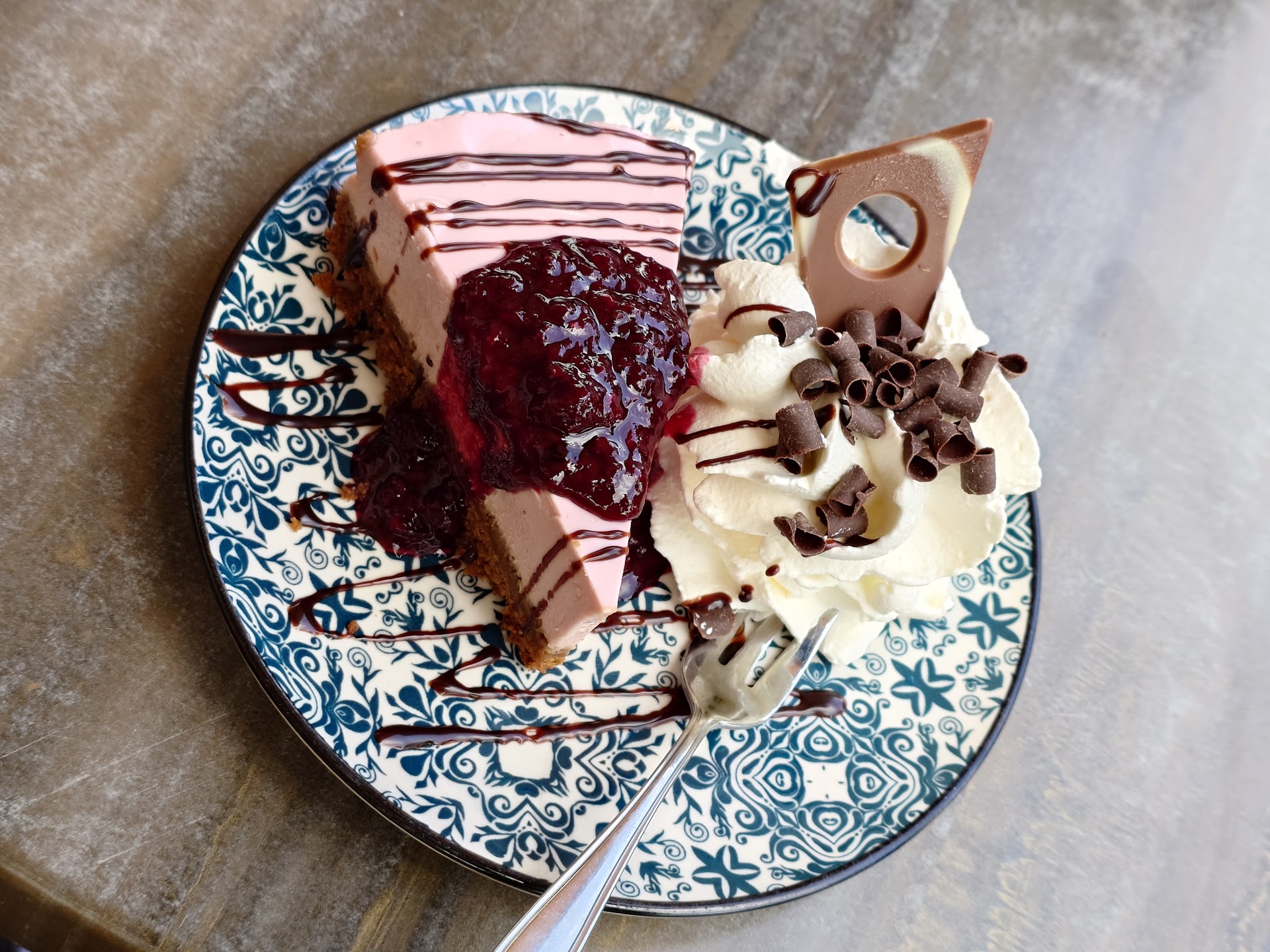 Very nice staff. That makes the difference for any establishment even if the food is average. (I have high standards for food, so three star for food is actually not so bad.) The staff was friendly, patient and had a smile on their face. So a smile, means tip for them. The place had the heater on, blankets on the seats for when it is cold. We sit in the indoor terrace area, nice and bright with a fresh feel to it. Service was quick, friendly, polite and overall nice experience. If you like a alcohol beverage, order the "Griffel" at the end of your meal. It is delicious. I bought a whole bottle of it. You can park your car behind the place. You can certainly stop by here for a quick bite and be served friendly....