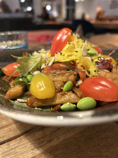 Niet al te groot etablissement, netjes, kleurrijk, gezellig, relaxte sfeer, vriendelijke ontvangst en bediening. Half open keuken waaruit de meest heerlijke geuren opstegen. Hier werd met liefde, kennis en fantasie gekookt, dat kon je zien, ruiken en proeven, en niet zoals in menig restaurant waar doorgaans vaak iets van de groothandel zonder al te veel eigen inbreng of fantasie "opgewarmd" en " opgediend' wordt.