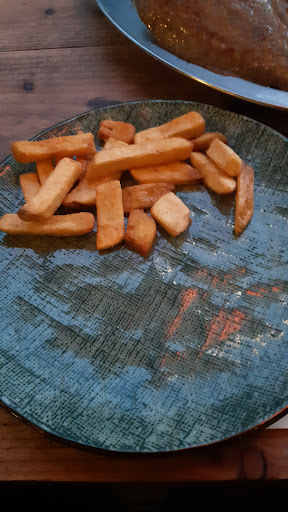Read moreWenn der panierte Backfisch noch voll mit Gräten ist, läuft was falsch. Und ich meine nicht ein oder zwei... Alle. Der Wolfsbarsch war auch sehr fade, ohne die Soße hätte man gar keinen Geschmack gehabt. Obendrein stand auf der Karte, dass der Wolfsbarsch mit Meeresfrüchten serviert würde. Die einzige Beilage waren Pommes, Kraut und Mini-Spargel. In der Küche scheinen sie auch Probleme zu haben, denn wir haben sehr lange auf unser Essen gewartet und dann auch nur ein halbes Gericht, der Rest kam dann 10 Minuten später. 4 Euro für eine 0.2L GingerAle (Limonade) ist auch heftig überteuert. Ach ja und unser Tisch klebte extrem.