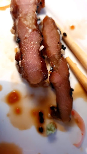 Eten was koud/lauw, wat ik voor vis gerechten echt niet chill vind. We hebben een schaal met 34 sushi rollen besteld, alle 34 lagen erop dus dat was top. Vet veel mayo overheen gedaan waardoor de sushi pap werd en bij eentje hadden ze saus over heen gedaan wat hard was geworden, ook niet zo chill. Er zijn betere tenten...