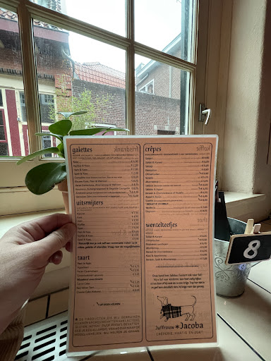 Juffrouw Jacoba is a cozy, cute place where I had lunch with 2 friends last Saturday. Overall a great experience and a fun atmosphere. I had a hot chocolate with whipped cream and a crêpe with sugar, both were on point 👌🏼The hot chocolate was served as warm milk with chocolate chips on the side, so you can dial in how chocolatey you want it. The crêpe was absolutely tasty as well! Also there was a cute small dog walking around the restaurant, I reckon it's the owner's. On our way out we asked one of the waitresses about Amersfoort (as this way our first time there) and she gave us a bunch of tips and a map of the city with all the local spots for sightseeing. All in all,...