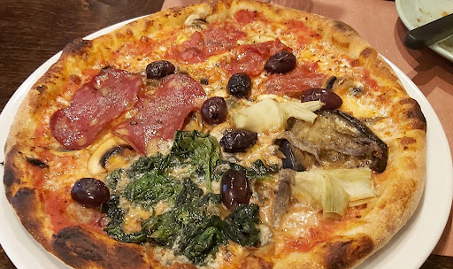 Non voglio essere severa, solo realista. Forse sono l' unica italiana capitata in questa pizzeria, e quindi per amore della sincerità e della finta " italianità " che vendono c'è da dire: Di italiano hanno solo i nomi le pizze ed almeno sono corretti grammaticalmente. La pizza Margherita ha un condimento esagerato con oregano o non so che, che di certo non assomiglia all' originale. La pizza sorrentina una tristezza infinita visuale e di sapore. Abbiamo ordinato , il locale , moderno, pulito , anche aperto a famiglie con bambini, parlano inglese. Mentre sfornano la pizza vediamo che la nostra pizza mentre viene tirata fuori dal forno cade a terra. Aspettiamo 1 minuto e vediamo che ci stanno portando questa stessa pizza caduta e rimessa nel piatto. Su richiesta esplicita del come sia possibile questo , la risposta è stata che il locale è molto pulito e alla fine l' abbiamo accettata. Mangiamo queste pizze solo per fame , poi vado a pagare. Mi nominano la cifra , io pago. Poi chiedo lo scontrino solo per scrupolo e vedo che mi hanno segnato 5 bibite in più. Il personale dispiaciuto si è scusato e mi ha ridato i soldi. Insomma cose incredibili. Un locale così in Italia non sopravviverebbe neanche 1 minuto, lo stesso sarebbe in altre città con concorrenza. Qui credo che la gente sia felice di avere almeno loro, per questo vi auguro di migliorare e non fare più questi errori. Agli italiani che vengono ad Amersfoort consiglio vivamente di mettersi l'anima in pace e...