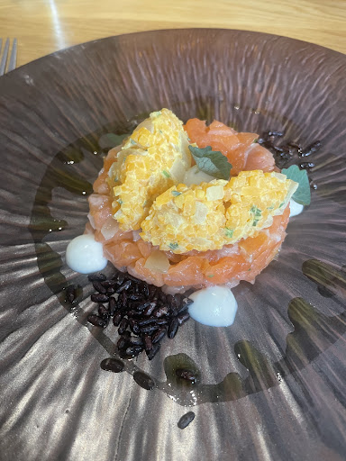 Read morewij hebben hier 4-4 gedineerd. na ontvangst naar onze tafel bergelijkt door een leerling-gastvrouw. wij hadden gekozen voor het vier gangen chef menu. na de Amuse volgde de eerste gang Ceviche van Dorade en 1 persoon had een vlees gang dat werd steak tatare. (dit zijn allemaal gerechten die ook op de kaart staan) wat opviel was dat er geen intruteur de zaal liep voor een beetje controle, want nu komt het. de volgende gang wordt in gezet van ons viergangen diner. het hooftgerecht? met een kleine uitleg altijd leuk. maar op de vraag wat de volgende gang dan gaat worden omdat we het gevoel hadden dat ze een gang vergeten waren, stond er er in eens een groot vraagteken aan tafel? volgende gang dit is het hooftgerecht. wij hadden toch een viergangen diner besteld, overleg met de keuken wat nu? niks dus, maar ze ging even inoverleg hoe dit op te lossen, weer niks..